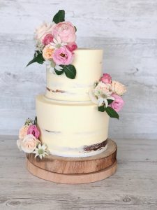 Buttercream Finishes / Not Naked Cake with Fresh Flowers / Weddings