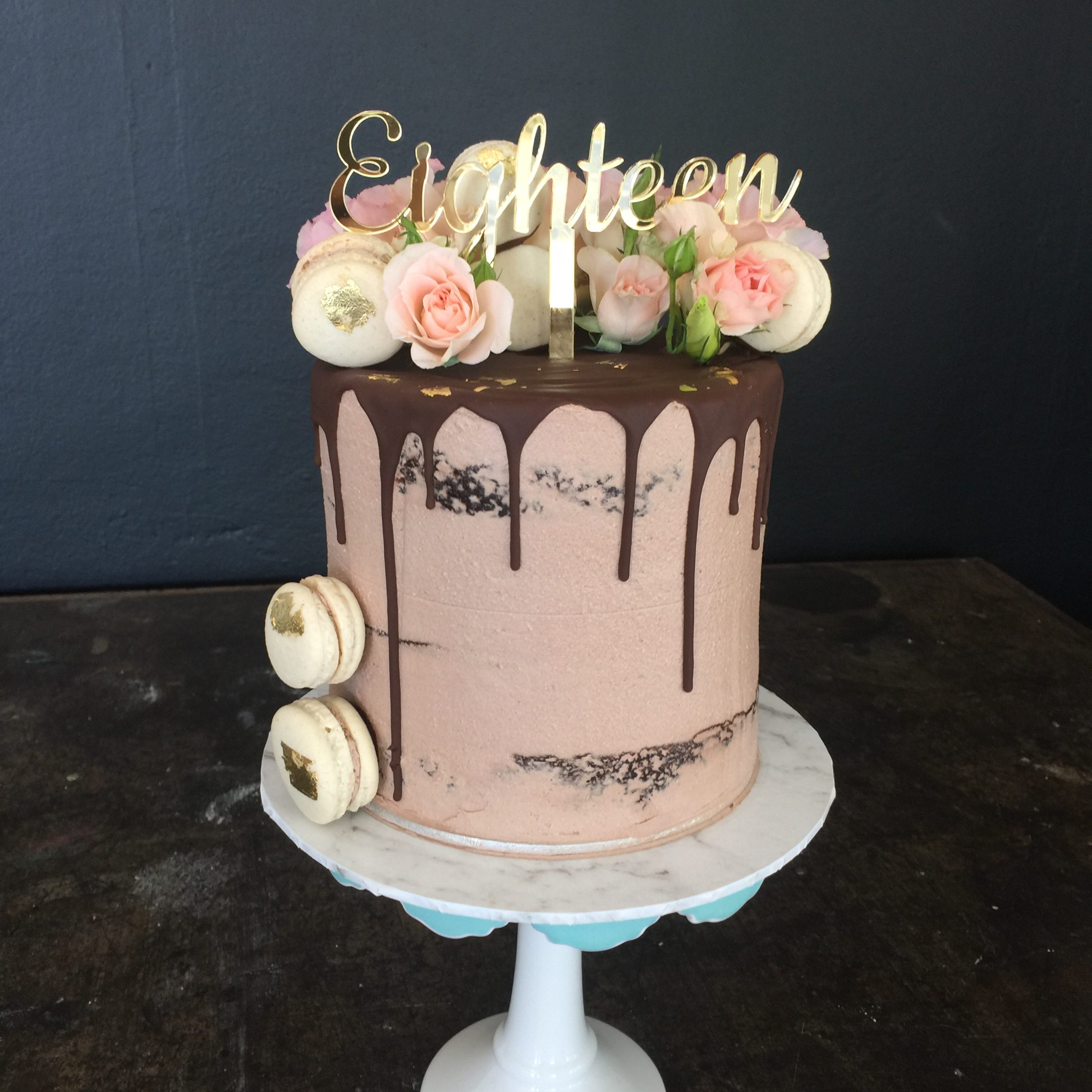 Semi Naked Vegan Chocolate cake with Vegan macarons